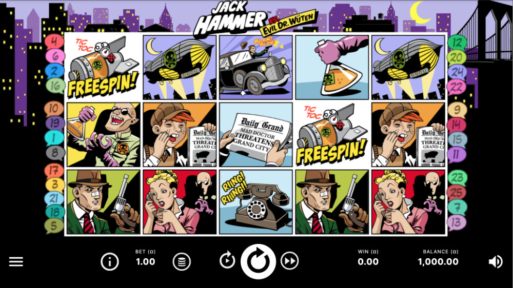 Jack Hammer je komiksově laděný výherní automat od Netentu, který kombinuje detektivní příběh, napínavou atmosféru a atraktivní herní funkce s vysokým RTP.