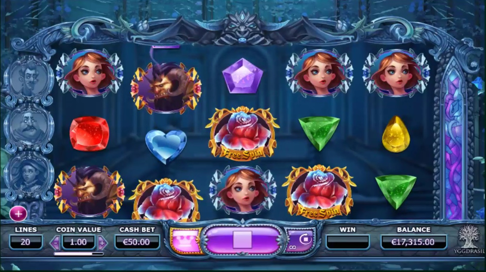 Vysoce placené symboly – v základní hře představují Krásku a Zvíře, ve Free Spin módu se mění na Princeznu a Prince. Tyto symboly přinášejí nejvyšší výhry a jsou důležité pro aktivaci kombinací na výherních liniích.