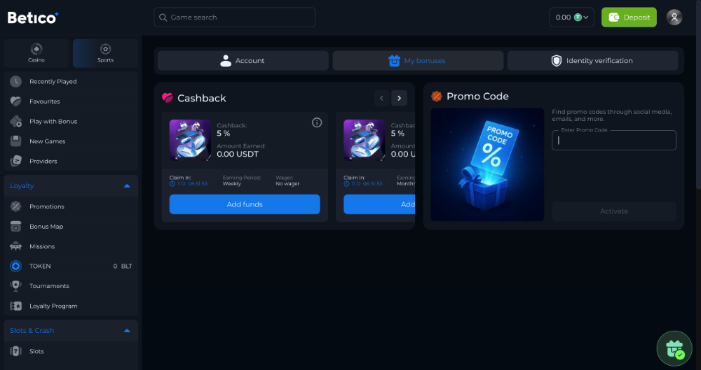Betico odměňuje nové hráče cashbackem až do výše 50 % z prohraných prostředků během prvního měsíce hraní. Čím více hrajete, tím větší část svých ztrát získáte zpět – systém sleduje všechny vaše prohry od okamžiku registrace a vyplácí cashback v několika etapách: