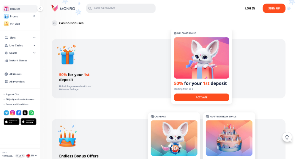 Hráči v Monro Casino mohou využít připravované bonusové programy, které jim umožňují získat přístup k dalším zajímavým benefitům