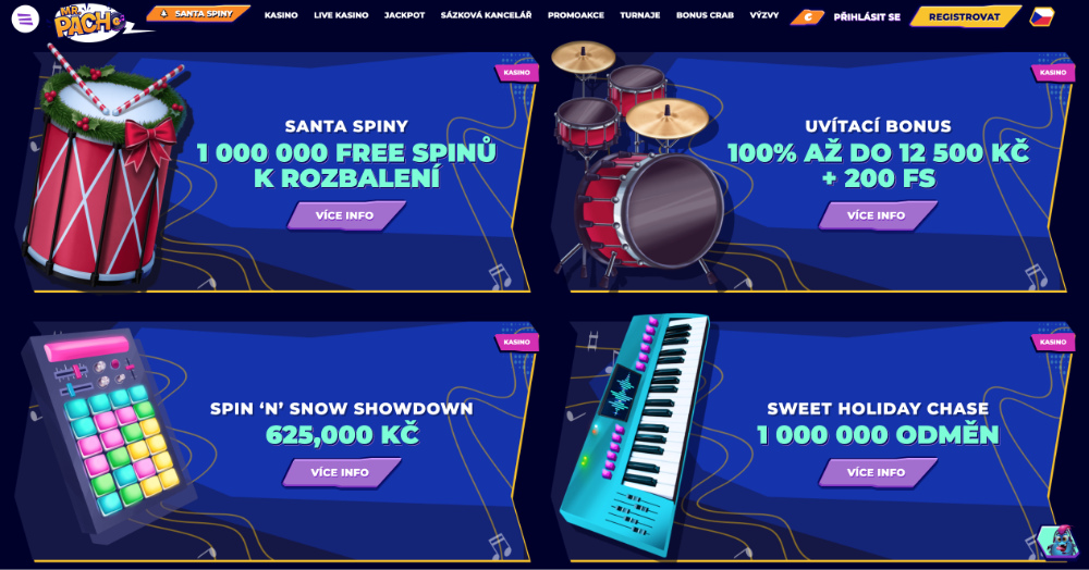 Zajímá vás, zda MrPacho nabízí no deposit bonus a jaké další bonusy zde můžete získat bez zbytečných komplikací? Přemýšlíte, jak fungují vstupní casino bonusy, free spiny nebo sportovní promoakce a jaké podmínky je potřeba splnit, abyste je mohli skutečně využít? Podíváme se na přehled bonusů v online casinu MrPacho, vysvětlíme jejich principy a pomůžeme vám zorientovat se v tom, co jednotlivé nabídky přinášejí.