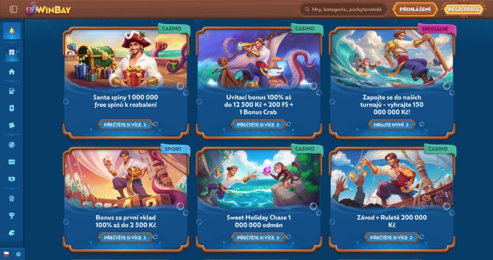 V casinu WinBay na vás čeká mnoho bonusových nabídek. Stejně je tomu také v sekci sázkové kanceláře herní platformy WinBay. Mezi hráči je velmi oblíbený no deposit bonus. Nyní vám prozradíme, zda tento bonus poskytuje i herní platforma WinBay. Řekneme vám také, jaké další bonusové nabídky na vás čekají.
