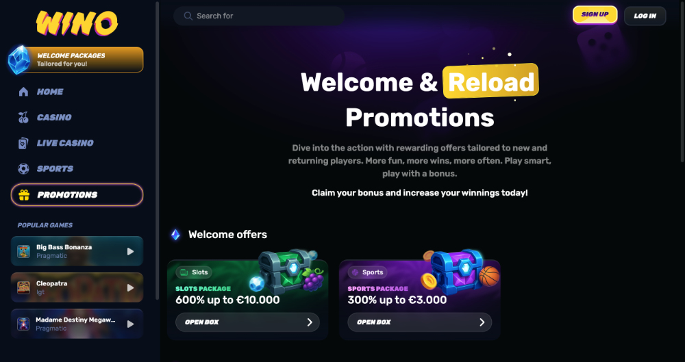 Strategie Wino casina je postavena na férovějších a objemnějších bonusech, kde hráč přesně ví, kolik vkládá, jaký bonus získává a za jakých podmínek jej může využít. I když absence no deposit bonusu může některé hráče odradit, celková bonusová nabídka je zaměřená na reálnou herní hodnotu.