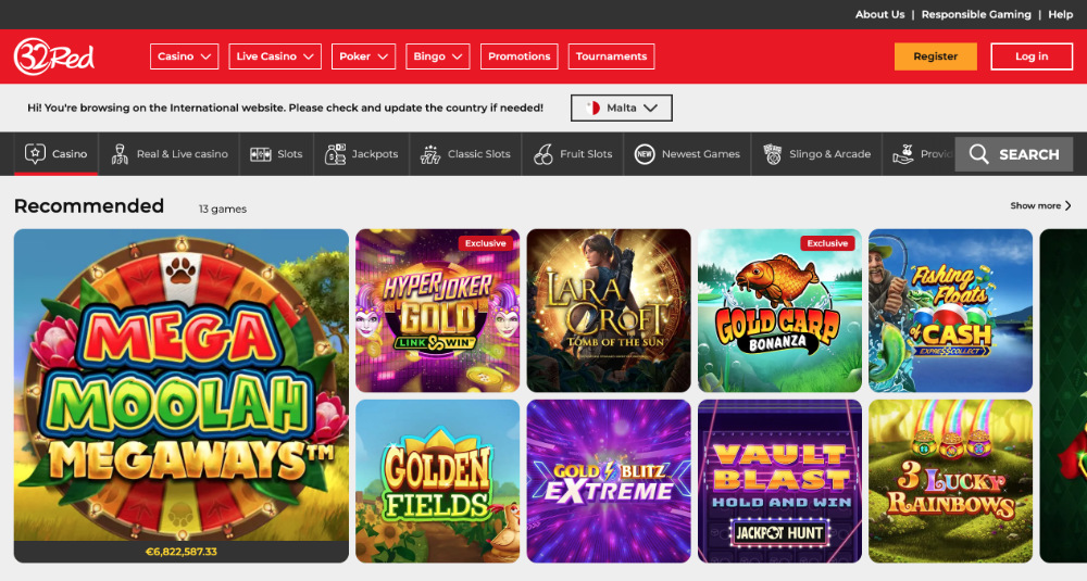 Casino 32Red nabízí vzrušující herní zážitek, pestrou škálu her, zajímavé turnaje, promptně fungující zákaznickou podporu, snadno použitelné a bezpečné platební metody.