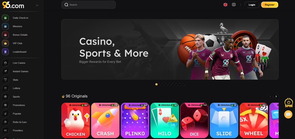 Platforma casina 96 představuje moderní online centrum pro sportovní sázení a casinové hry, které hráčům nabízí širokou škálu atraktivních her a příležitostí. Stránka plně podporuje platby v různých kryptoměnách i fiat měnách, a dokonce zavedla vlastní exkluzivní platidlo 96 Coin.