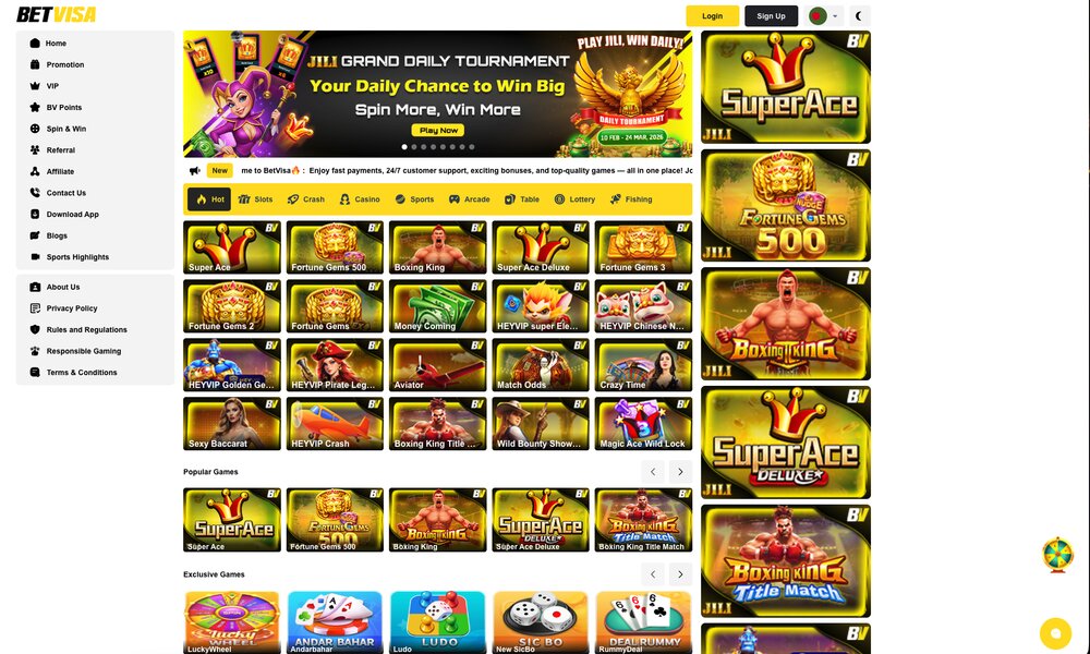 Casino BetVisa působí jako moderní herní brána do světa online zábavy, kde se propojuje svižná akce s širokou nabídkou her a výraznými bonusovými kampaněmi. Pojďte si užít podmanivou atmosféru této platformy a zahrát si o pořádný balík peněz.