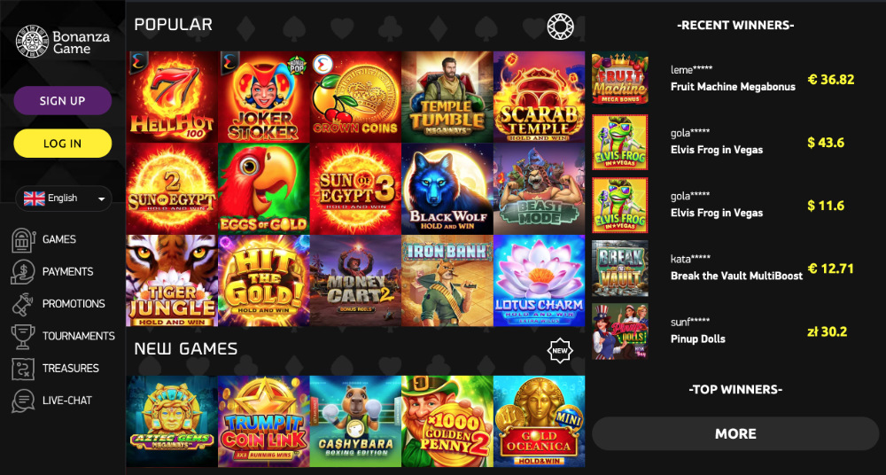 Zahraniční online casina patří mezi oblíbenou volbu hráčů, kteří hledají širokou nabídku her, zajímavé bonusy a mezinárodní herní prostředí. Jedním z nich je také BonanzaGame. Casino nabízí moderní design, přehlednou strukturu stránek a snadnou orientaci i pro nové hráče. Zaujme především velmi bohatou bonusovou nabídkou, která zahrnuje no deposit bonusy, vkladové bonusy i cashback.