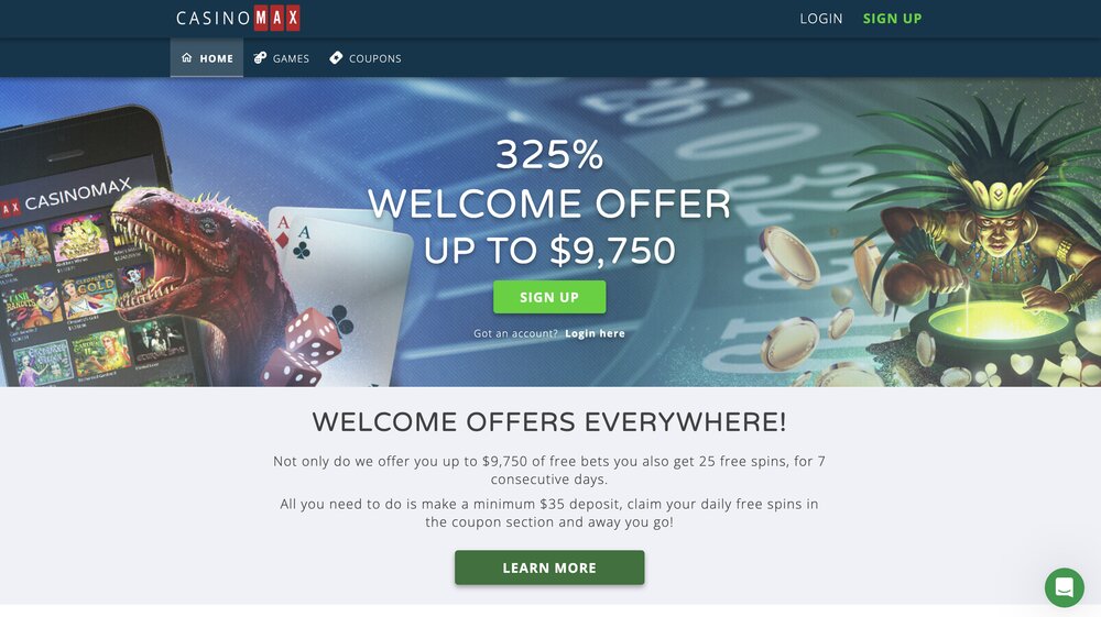 CasinoMax nabízí novým hráčům štědrý uvítací balíček zaměřený především na výherní automaty. V rámci prvních tří vkladů mohou získat až 325% bonus v celkové hodnotě do 9 750 $, který lze využít na hraní slotů. Nabídka je dostupná po registraci a aktivuje se postupně podle jednotlivých vkladů.