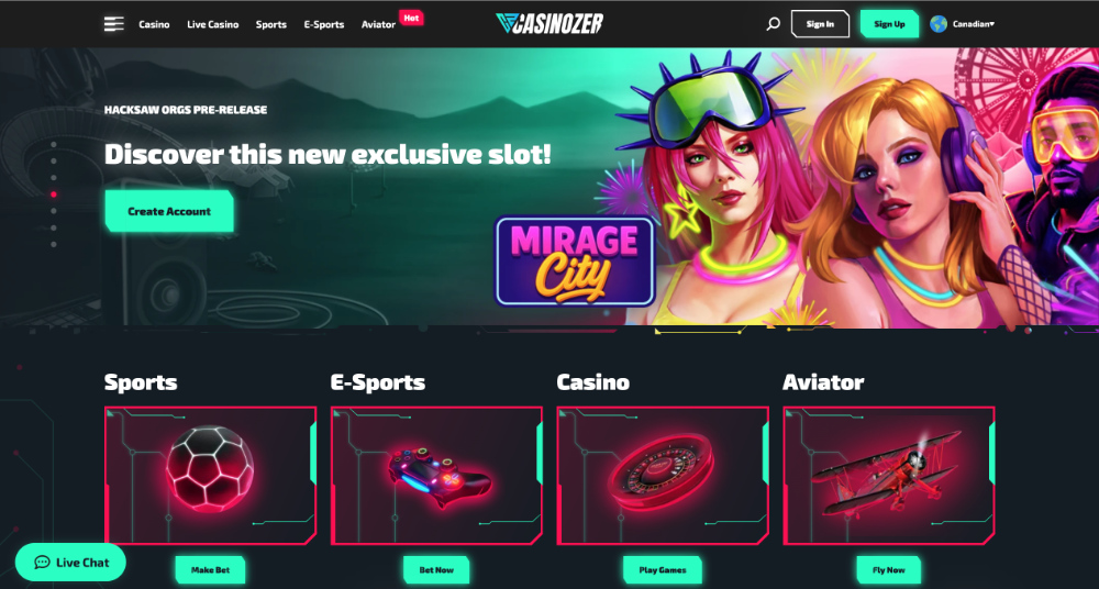 Herní nabídka v casinu obsáhne opravdu široké spektrum možností pro různé typy hráčů a tvoří ji především bohatý výběr výherních automatů. K dispozici jsou klasické sloty, jackpotové hry, tituly s funkcí bonus buy i retro automaty inspirované starším stylem hraní. Na hrách se podílejí známí vývojáři, mezi které patří Play’n GO, BGaming, Hacksaw Gaming, Novomatic a další studia. Významnou součástí portfolia je také live casino s živými dealery, kde si lze zahrát blackjack, ruletu a další stolní hry. Zkrátka nezůstanou ani sázkaři, kteří zde mají možnost sázet na klasické sporty i e-sporty.