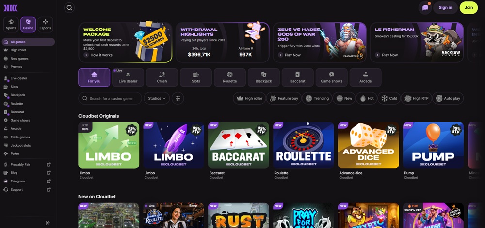 Cloudbet nabízí online hraní v moderním prostředí s důrazem na jednoduchý přístup k herním kategoriím