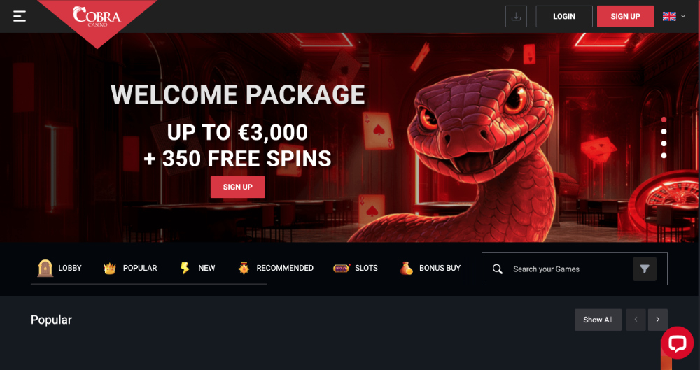 Užijte si spoustu zábavy v Cobra Casino. Zahrajete si hazardní hry a získáte lákavé bonusy. Pojďte si svou oblíbenou hru vybrat i vy a vstupte do světa plného zábavy.
