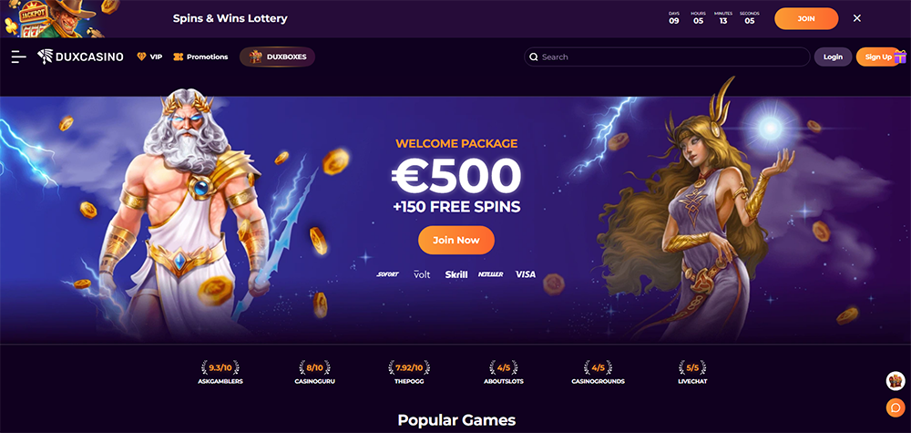 Jedním z velice oblíbených pravidelných bonusů je bonus s názvem Duxboxes, kde na vás při otevírání truhly může čekat až 3 000 EUR. Výše odměny, kterou v truhle najdete, se odvíjí od toho, jakou částku do casina vložíte. Při vašem vkladu pak nezapomeňte zadat příslušný kód, bez kterého nebude bonus platný.