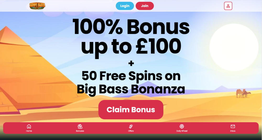 Pro každého nového hráče si Egypt Slots připravilo uvítací dar, který mu pomůže v rozjezdu na cestě za pyramidami. Můžete se těšit na 100% bonus až do výše 100 GBP, který váš první vklad zdvojnásobí. K tomu navíc obdržíte 50 free spinů na legendární automat Big Bass Bonanza, kde můžete zkusit své štěstí při lovu velkých výher. Pro aktivaci této nabídky stačí provést první vklad v minimální výši 10 GBP. Rovněž byste měli počítat s tím, že na bonus se vztahuje podmínka 65x protočení, bez jejíhož splnění nelze bonus vybrat.