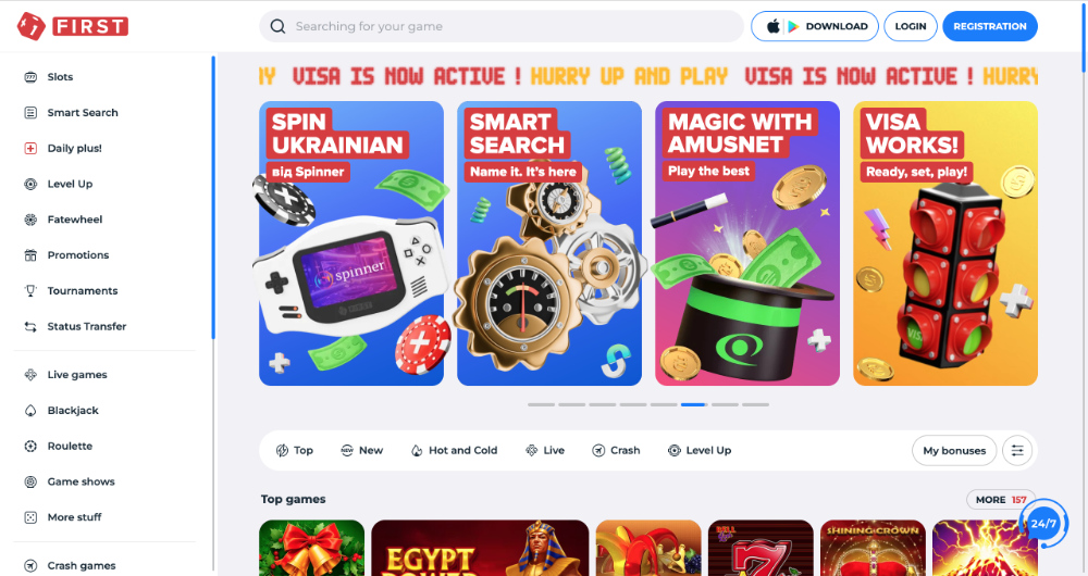 First Casino patří mezi moderní online casina, která se soustředí na intuitivní uživatelské prostředí a široké spektrum herních možností. V nabídce najdete klasické výherní automaty, jackpotové hry, živé casino nebo specializované sekce typu blackjack a ruleta.
