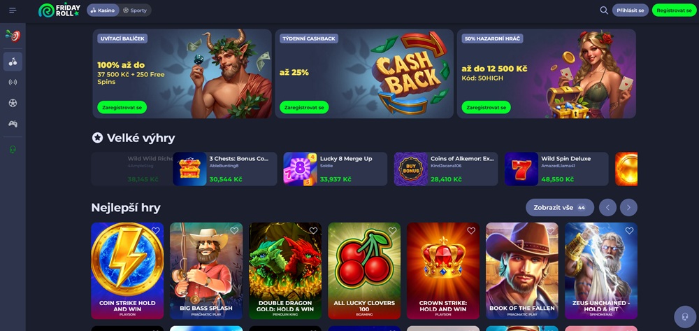 Prozkoumejte pestrou nabídku casina Fridayroll. Zahrajte si oblíbené online hazardní hry, využijte atraktivní promoakce, zkuste štěstí v loterii a získejte věrnostní odměny, které dodají hraní nový rozměr.