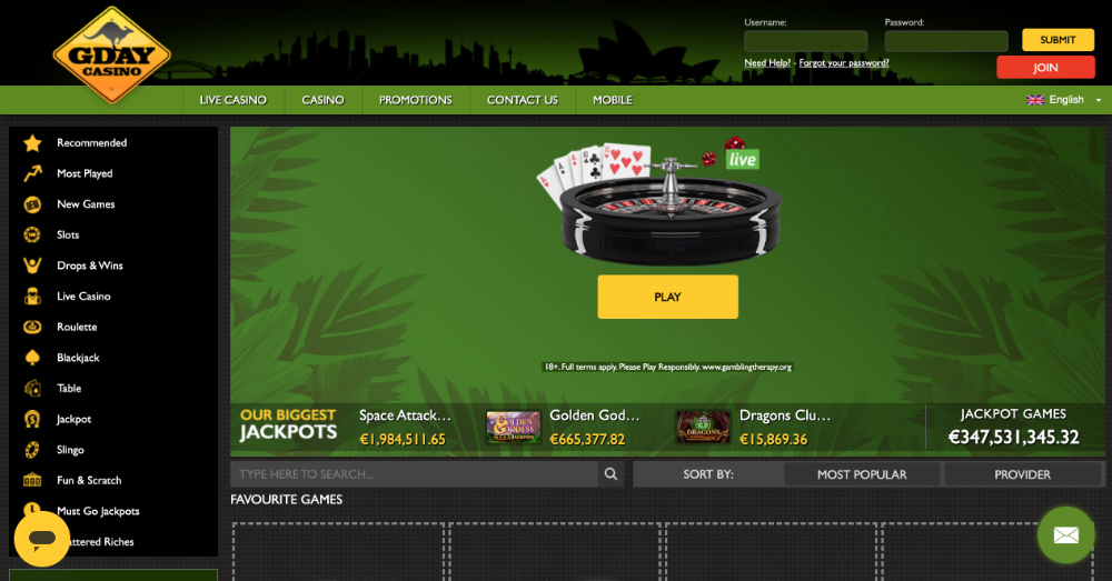 Začít HRÁT v G’Day Casino