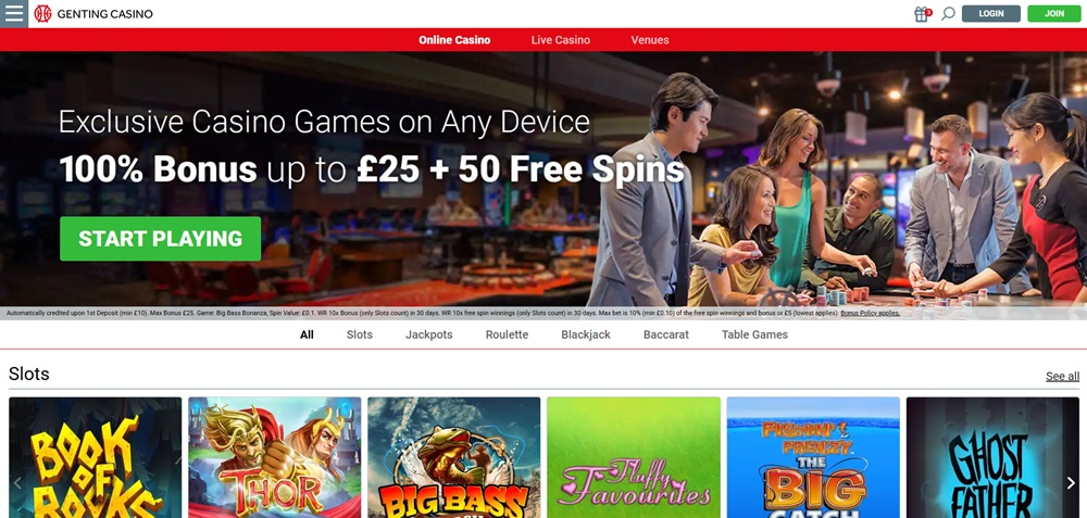Internetové Genting Casino disponuje letitými zkušenostmi v oboru. Nabízí více než 6 000 her, a to včetně takřka 100 novinek každý měsíc. Nově registrovaní hráči mohou získat uvítací bonus, věrní mají možnost obdržet pozvání do VIP clubu. Na nejlepší hráče čekají hodnotné ceny, a to včetně výletu do Las Vegas. Provozovatelem casina je společnost Genting Casinos UK Limited.