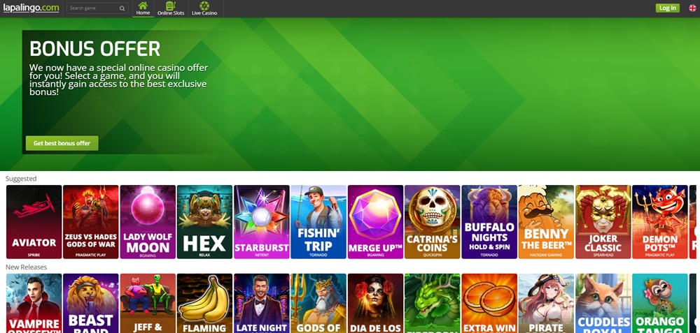 Lapalingo je online herní platforma orientovaná především na slotové automaty a živé casino. Nabídka zahrnuje tituly od známých poskytovatelů, mezi nimi například Pragmatic Play, NetEnt či Microgaming, a doplňují ji také hry od menších studií. Díky tomu si zde přijdou na své hráči hledající klasické ovocné automaty i moderní video sloty s bonusovými funkcemi.