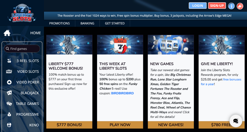 Liberty Slots nabízí nevšední a kreativní bonusy, které se odlišují od běžných casin. Hráči mohou využít uvítací bonus formou Kola štěstí, speciální měsíční bonusy i odměny přes Rewards Points a VIP program. Bonusový systém je zábavný, proměnlivý a poskytuje různé způsoby, jak navýšit bankroll a vyzkoušet hry bez rizika.