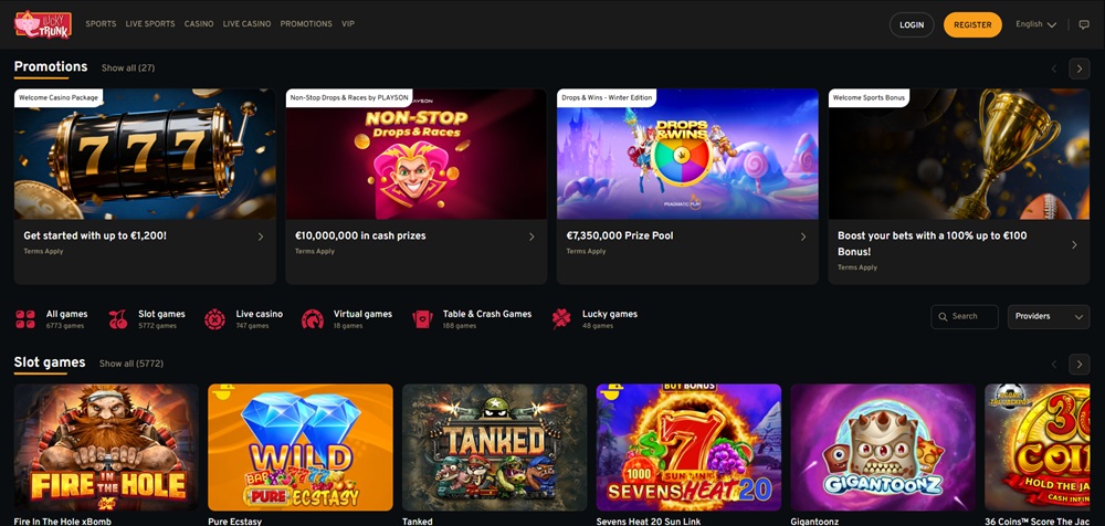 Lucky Trunk casino sází na jednoduché ovládání a přehlednou strukturu herních kategorií