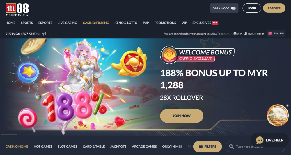 Na rozdíl od mnoha jiných platforem M88 nabízí také sportovní sekci, kde můžete sázet na oblíbené sporty a turnaje. Kromě toho je zde bohatá nabídka bonusů a promoakcí, která potěší nové i pravidelné hráče. Pro ty, kteří se rádi odměňují věrností, je připraven i VIP program s exkluzivními odměnami. Sekce Live casino zaujme fanoušky živé interakce s profesionálními krupiéry a autentickou atmosférou herny. V následujícím přehledu se podíváme, co všechno online casino M88 nabízí, a jak si tyto výhody maximálně užít.