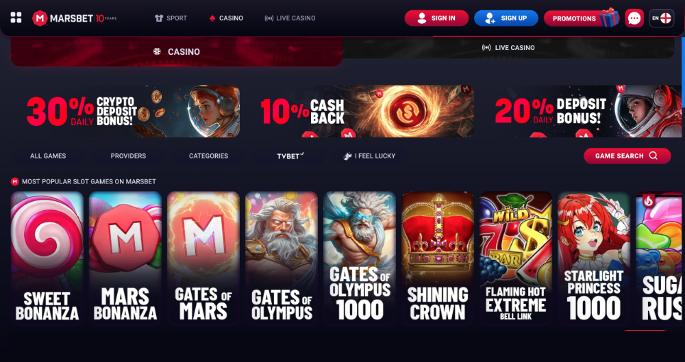 Marsbet casino patří mezi online platformy, které cílí na hráče hledající moderní prostředí, rychlou orientaci a pravidelné akční nabídky. Už na první pohled je vidět, že sází na dynamický design i široký záběr herních možností.