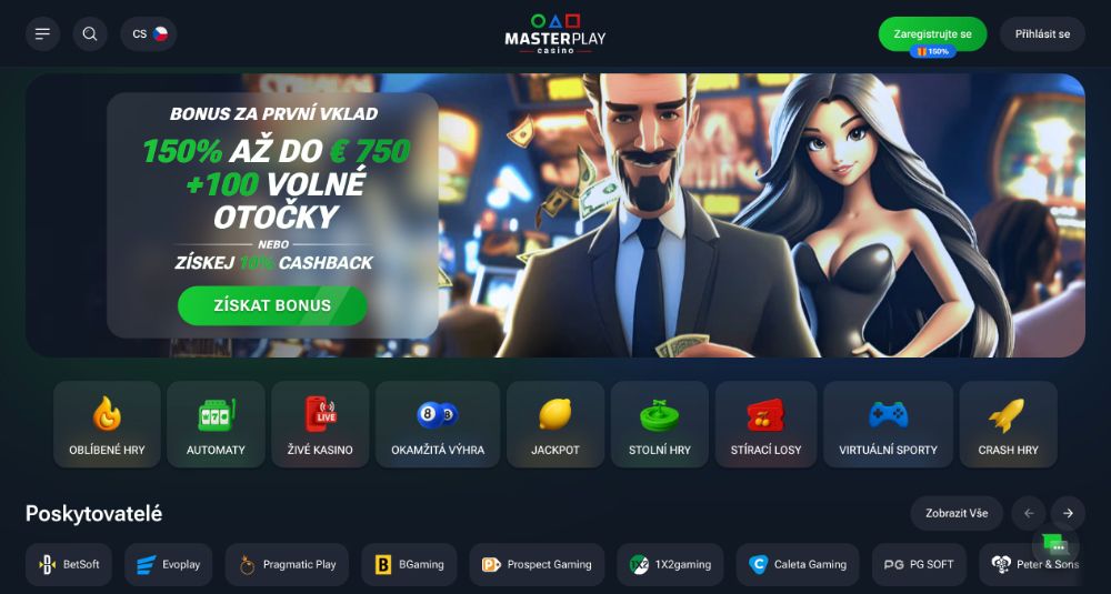 Nejnovější hry od předních poskytovatelů, live casino s ostrým a plynulým videopřenosem nebo lákavé atraktivní bonusy. Objevte online casino MasterPlay, a nechte se pohltit zábavou, která vás bude bavit na každém kroku.