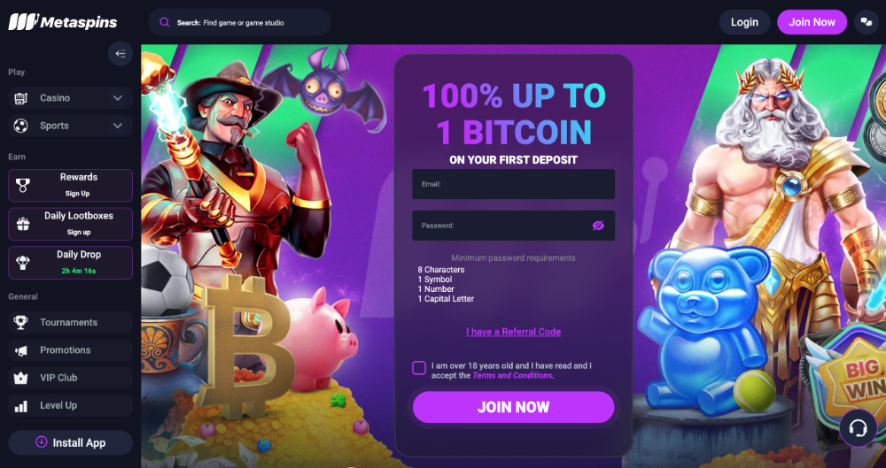 Bez bonusových odměn by to v Metaspins casinu nešlo. Veškeré promoakce jsou navrženy tak, aby vás jednotlivé odměny udržely ve hře co nejdéle. Těšit se můžete nejen na uvítací bonusový balíček, který vám v tomto casinu zajistí co nejplynulejší start, ale také pravidelné promonabídky přinášející vždy něco navíc. Stačí si jen v této platformě vytvořit vlastní účet a pustit se do hraní pěkně naplno.