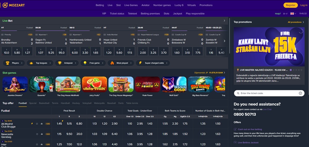 Podporu lze kontaktovat přes live chat, e-mail helpbh@mozzartbet.com, telefonní linku 0800 50 713 nebo Viber na čísle 066 885 599.