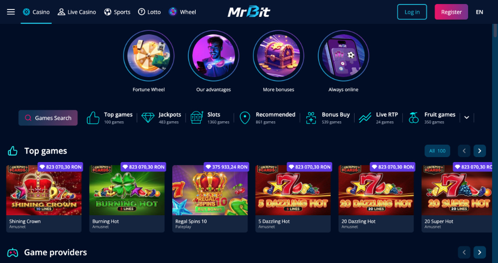 V tomto casinu chybí česká jazyková verze, jediné dvě varianty, které jsou na výběr, jsou angličtina a rumunština. Můžete si vybírat ze široké palety slotů a nechybí ani živé hry. Například, pokud máte v oblibě karetní partie, nechybí blackjack nebo baccarat. Zajištěna je také plynulá komunikace s podporou, které se můžete v live chatu ozývat 24/7.