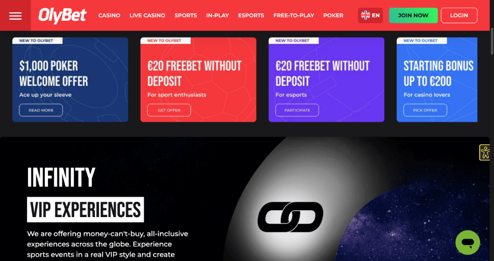 Registraci v OlyBet zahájíte kliknutím na tlačítko „JOIN NOW“, po kterém se zobrazí formulář k vyplnění základních údajů, jako je země, e-mail, heslo a telefonní číslo, a kde odsouhlasíte podmínky služby a případně souhlas s marketingovými zprávami. V dalším kroku zadáte svou národnost, zemi pobytu, povolání a uvedete, zda jste politicky exponovaná osoba. Po dokončení těchto kroků je účet aktivní. Před prvním vkladem je však nutné ověřit telefonní číslo a svou identitu.
