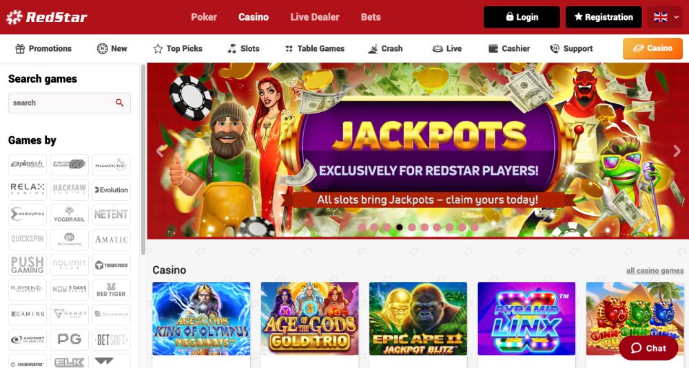 Casino RedStar nabízí možnost hrát výherní automaty i stolní a klasické hazardní hry, nechybí sekce živého casina a taky speciální sekce pro poker, kterému je věnována zvýšená pozornost. Pro poker je k dispozici speciální stažitelný software pro PC i mobilní telefony. Ostatní automaty a hry ale můžete hrát přímo v prohlížeči bez speciální aplikace. A příležitost k sázkám dostanou i sportovní fanoušci, pro které je zde rovněž sekce se sportovní sázkovou kanceláří.