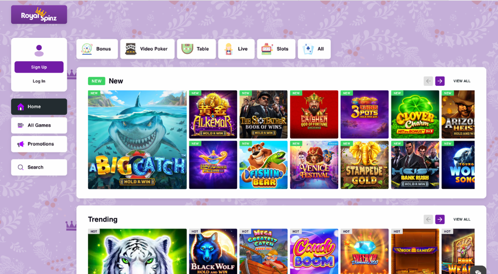 Některá online casina vás ohromí efekty, jiná vsadí na jednoduchost a přehled. Royal Spinz patří do druhé skupiny a už při prvním prokliku dává najevo, že chce být hlavně snadno čitelné. Sama platforma se prezentuje jako místo, kde si vybere každý hráč, ať už je to blackjack, ruleta, sloty nebo poker.