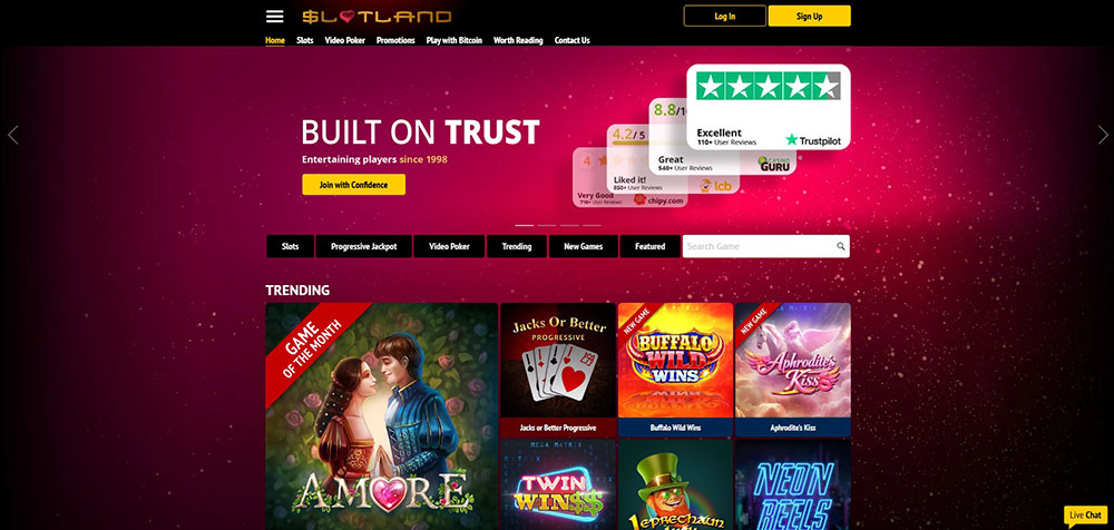 Hlavní dominantou Slotlandu jsou jednoznačně online automaty. Herní nabídka zahrnuje jak klasické retro sloty, tak i moderní videohry s příběhem a spoustou bonusových efektů. Těšit se můžete na tituly z dílen předních herních vývojářů, špičkové mechanismy, a především parádní výhry. Kromě toho si můžete v tomto casinu zahrát i oblíbený video poker, a to hned v několika variantách.