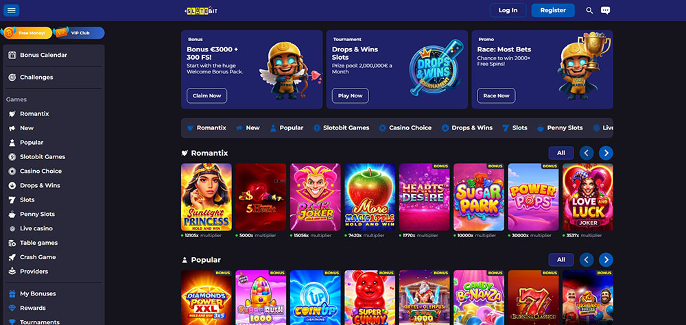 Zahrát si lze klasické stolní hry jako ruletu, blackjack, baccarat, poker nebo kostky, a to i v živé variantě s krupiérem. Milovníci automatů zamíří do sekce „Slots“, kde je připraven široký výběr her různých stylů. Pokud preferujete rychlejší a jednodušší formáty, zaujmou vás kategorie „Slotobit Games“ nebo „Crash Game“, ve kterých najdete tituly jako Spaceman, Plinko, Mines, ScoreX nebo ChiX.