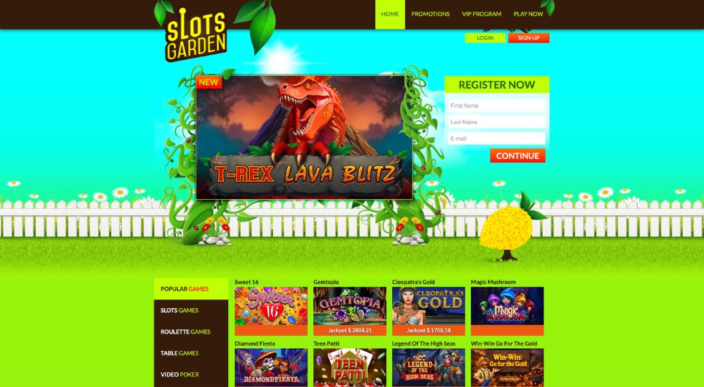 Některá zahraniční casina mají velmi široký výběr, v tomto případě je nabídka méně početná. Slots Garden sází hlavně na tituly od Realtime Gaming, kam patří například výherní automat T-Rex Lava Blitz. Zahrát si můžete také sloty od Spinfinity, jako například Diamond Fiesta. V nabídce převažují hlavně automaty, v sekci „Roulette Games“ je pouze jediná hra (European Roulette), těšit se můžete také na několik stolních her (sekce „Table Games“, kde je v hlavní roli blackjack). Zcela chybí nabídka klasického live casina, tedy například hry s moderátory nebo živými rozdávajícími.