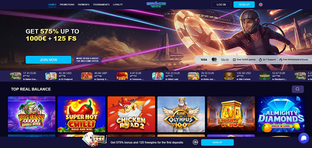 Masivní uvítací balíček rozdělený do čtyř vkladů, pravidelné týdenní akce a herní knihovna plná známých titulů i live stolů. SpaceWin Casino nabízí prostředí, kde můžete využít vysoké procentuální bonusy a pokračovat v hraní s cashbackem.
