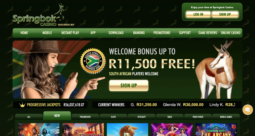 Springbok Casino nabízí přehledné a uživatelsky přívětivé webové stránky. Casino cílí především na jihoafrický trh, což se odráží v hlavní měně ZAR a specifické bonusové nabídce. Hráči mohou využít široké spektrum bonusů, včetně uvítacích balíčků, cashbacku a free bonusů. Herní nabídku tvoří více než 200 her, převážně od poskytovatele Realtime Gaming, se zaměřením na výherní automaty a klasické stolní hry. Nechybí demoverze her ani vlastní mobilní aplikace pro pohodlné hraní.