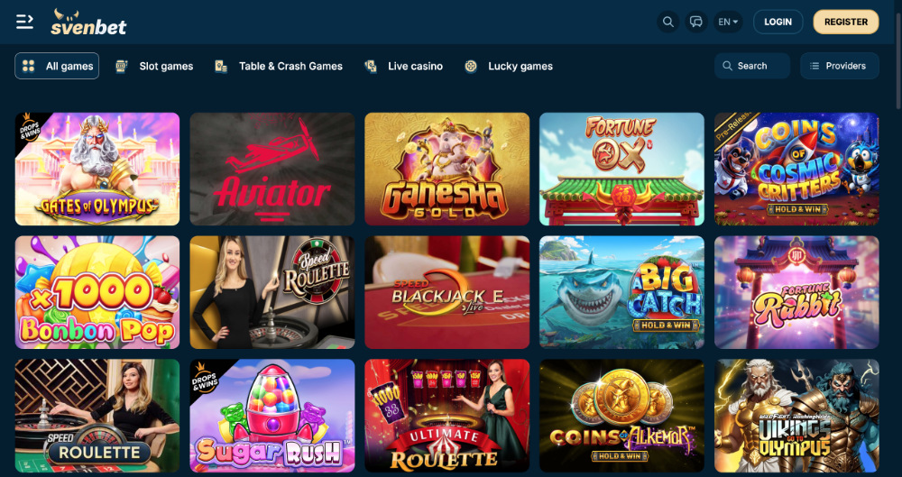 Online casino SvenBet provozuje společnost Green Champions Leader SRL a je cílené především na mezinárodní hráče, čemuž odpovídá i kompletní rozhraní v anglickém jazyce. Celý web působí přehledně a moderně, s důrazem na snadnou orientaci mezi hrami, bonusy a uživatelským účtem. Platforma je plně přístupná přes počítač i mobilní zařízení bez nutnosti instalace aplikace. Důraz na srozumitelné podmínky a jasně členěné sekce pomáhá hráčům rychle se zorientovat ještě před zahájením hraní.
