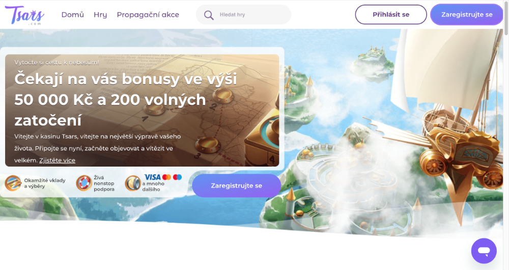 Připravte se na herní dobrodružství, kde každé zatočení může znamenat obrovskou výhru. Online casino Tsars vás zavede do světa plného překvapení, a to od akčních výherních automatů přes živé stolní hry, až po progresivní jackpoty. Každá hazardní hra je výzvou, každá výhra odměnou a každý bonus cestou k ještě větším zážitkům. Společně si teď pojďme celé casino projít krok za krokem.