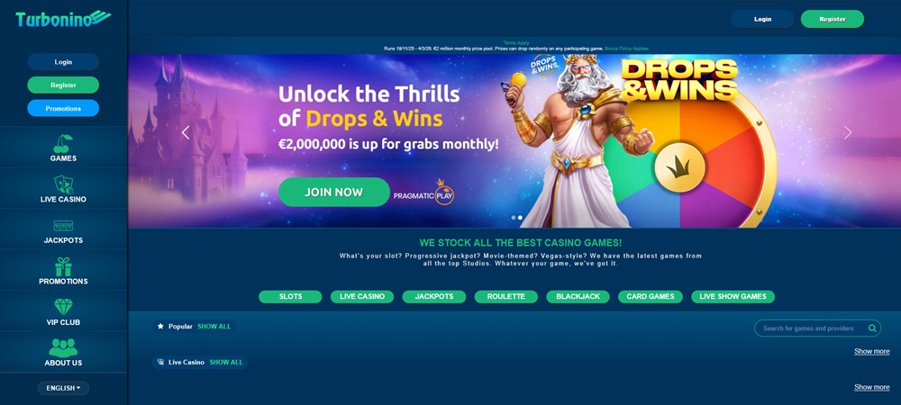 Casina nabízí různé typy bonusů, od vstupních až po věrnostní odměny pro pravidelné hráče. Přehled celé bonusové nabídky je v případě casina Turbonino dostupný v levém sloupci hlavního menu v sekci „Promotions“. Důležitou součástí každého bonusu jsou podmínky protočení, tedy počet sázek, které je nutné splnit, aby se bonusové peníze změnily na skutečné. Právě tyto podmínky často rozhodují o výhodnosti konkrétní nabídky. Bonusy tak nejsou jen zdarma, ale mají jasně daná pravidla. Pojďme se podívat na to, jak je to v tomto casinu.