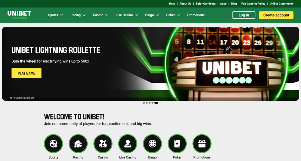 Již z hlavní webové stránky je patrné, že casino Unibet cílí na jednoduchost a přehlednost. Uživatel je hned po vstupu informován o hlavních produktech a aktuálních promoakcích. Nechybí ani jasně uvedené základní podmínky nabídky a odpovědný přístup k hraní, což podporuje důvěryhodnost značky a její dlouhodobé postavení na trhu online hazardu.