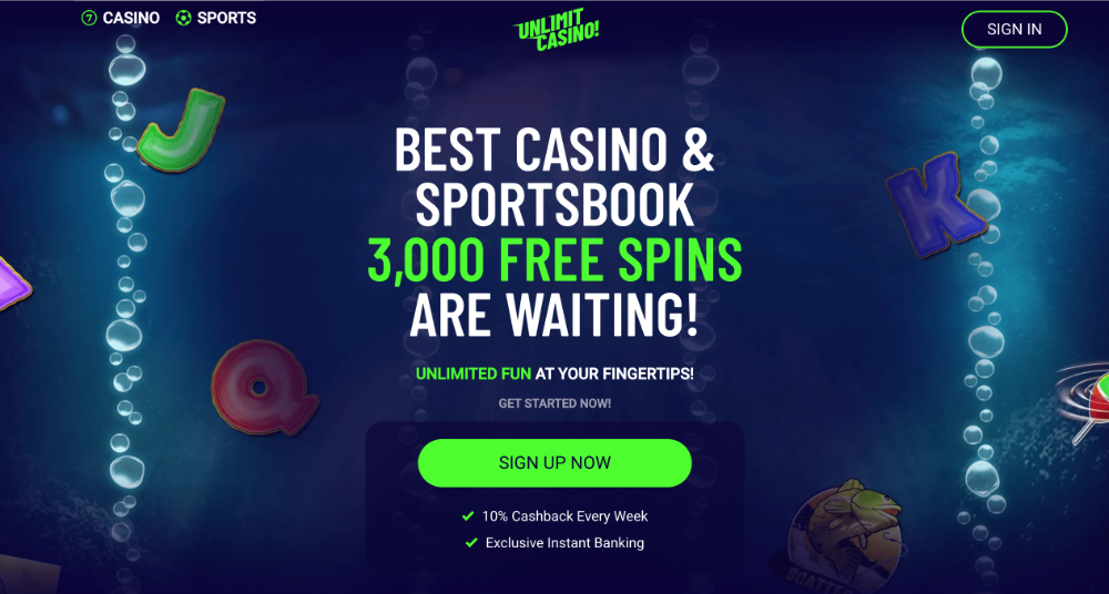 Kromě internetové herny se můžete vydat také do sázkové kanceláře, stačí jedno kliknutí a můžete se bavit také fotbalem nebo tenisem. V horní liště vlevo jsou dvě záložky, které jsou naprosto výmluvné (Casino, Sport). Název Unlimit Casino se poprvé objevil v roce 2022, nepatří tak k žádným nováčkům, ale je to dlouhodobě prověřené jméno.