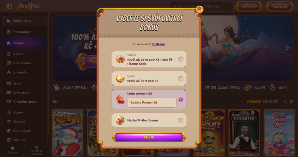 Hráči se často ptají, zda AbuKing nabízí speciální promo kódy, které odemknou lepší bonusy nebo exkluzivní akce. Dobrá zpráva je, že v AbuKing casinu žádný kód nepotřebujete – všechny dostupné bonusy získáte jednoduše a automaticky.