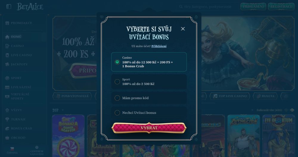 Získat UVÍTACÍ BONUS v casinu BetAlice