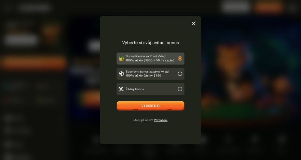 Nemáte k dispozici žádný promo code k registraci? Využijte potom dostupnou nabídku přímo od platformy, díky které můžete získat uvítací balíček pro casino nebo sport. Po vytvoření účtu a zadání prvního vkladu se vám v pokladně automaticky zobrazí přehled bonusů. Stačí si vybrat, jestli chcete balíček pro casino, nebo balíček pro sportovní sázky.