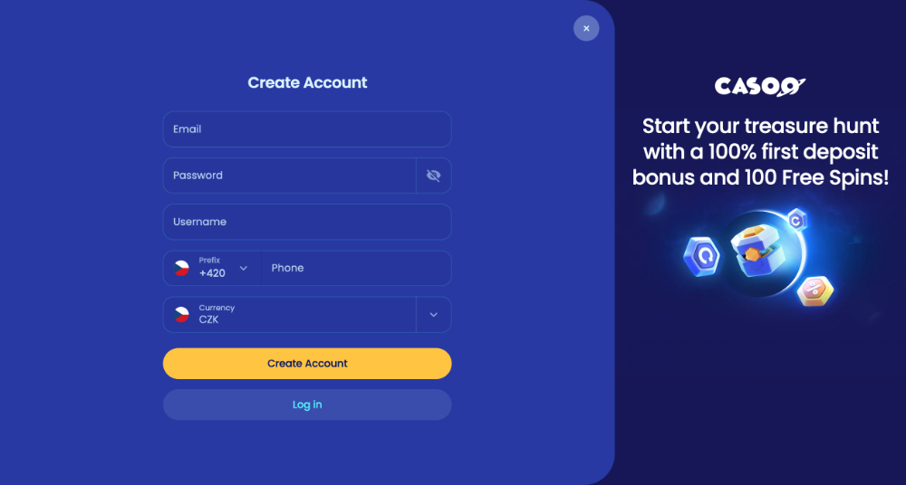 Registrace v casinu Casoo je navržena tak, aby byla co nejjednodušší a nezabrala více času, než je nutné. Možnost vytvoření účtu je dostupná hned po vstupu na stránku Casoo prostřednictvím tlačítka „Sign up“, které se ale také nachází v pravé části horní lišty stránky vedle přihlášení. Celý proces probíhá přímo na webu bez nutnosti stahování aplikace nebo dalšího softwaru.