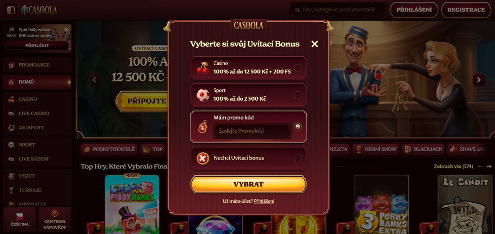 Pojďme se podívat, jak je to s registrací, promoakcemi a bonusovými kódy v případě internetové platformy Casoola. Ať už se rozhodnete zaregistrovat a využít některý z bonusů pro nové i stávající hráče, není třeba zadávat promo code. Promoakce jsou vám k dispozici, aniž byste k tomu potřebovali nějaký promo kód. Stačí si vybrat z aktuální bonusové nabídky.