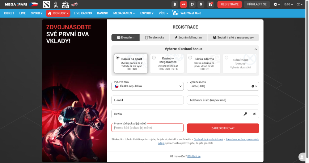 Je v Megapari potřeba promo kód, abych získal bonusy?