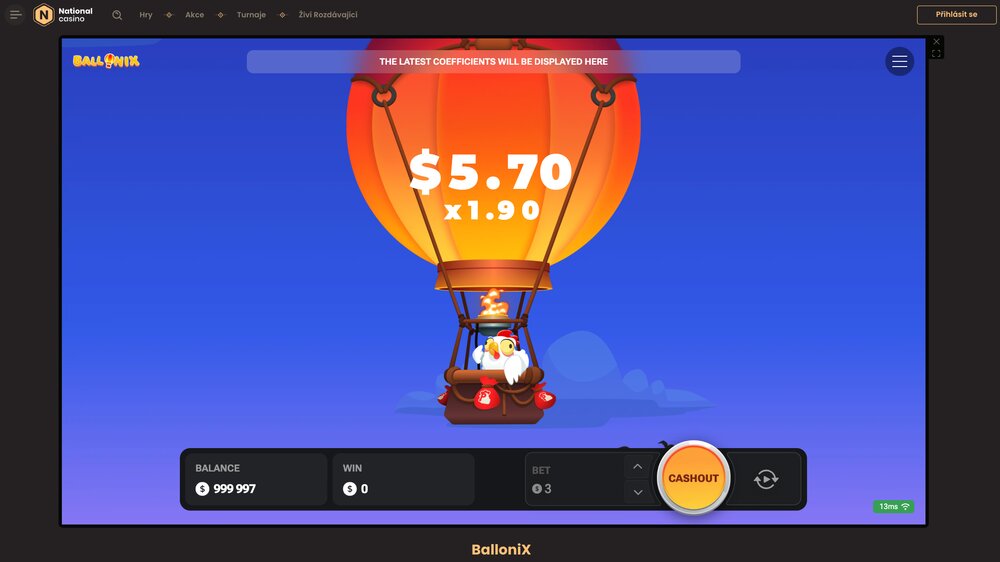 Hra BalloniX patří mezi tzv. crash hry, které staví na jednoduchém, ale návykovém principu. Sledujete, jak se násobitel postupně zvyšuje, a v pravý moment se rozhodujete, kdy hru ukončit a vybrat výhru. Čím déle vydržíte, tím vyšší násobitel můžete získat. Jenže zároveň roste riziko, že balon praskne, a vy přijdete o všechno. Hra zaujme nejen svým svižným tempem, ale i hravým vizuálem. Postavička kuřete v horkovzdušném balonu působí odlehčeně, ale samotná mechanika je o to napínavější. Každé kolo trvá jen pár vteřin, takže se snadno necháte vtáhnout do další a další hry.